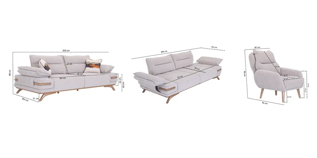 | ÜÇLÜ KOLTUK | 240 | 88 | 104 | 13 | 211x90 | 43 | 161 | 62 | 46 |