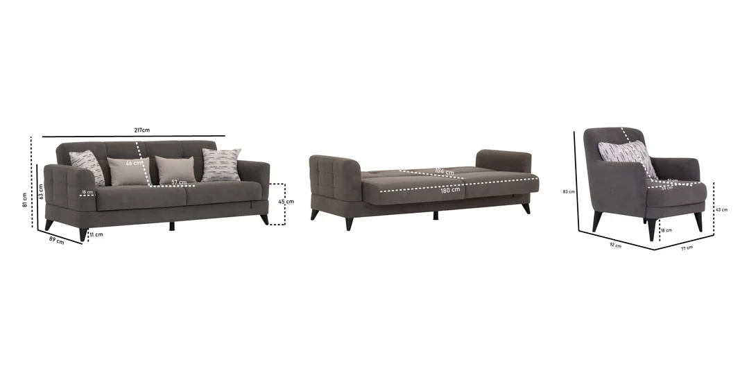 | ÜÇLÜ KOLTUK | 217 | 81 | 89 | 11 | 180x104 | 46 | 180 | 57 | 45 |